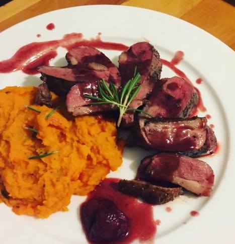 • 食譜概念: 利用臺灣在地食材洛神花(又稱玫瑰茄)製作酸甜醬汁,搭配煎得皮脆肉嫩的鴨胸。洛神花的酸能解鴨油的膩,其天然色素帶來夢幻的紫紅色醬汁,非常適合春夏或宴客時展現巧思。