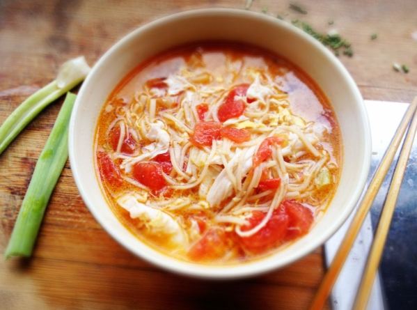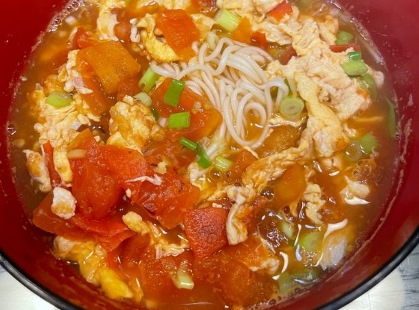 - 湯頭: 必須是透亮的濃鬱,不是混濁的濃稠。能清清楚楚看到軟爛的番茄肉、飄浮的蛋花,還有細細的油花(相信我,這很重要!)。入口先是溫和的酸香撲鼻,接著是番茄熬煮出的自然鮮甜味湧上來,最後留一點點回甘在喉頭。絕對不能用番茄醬或大量糖去硬拗那個甜味,會很膩!