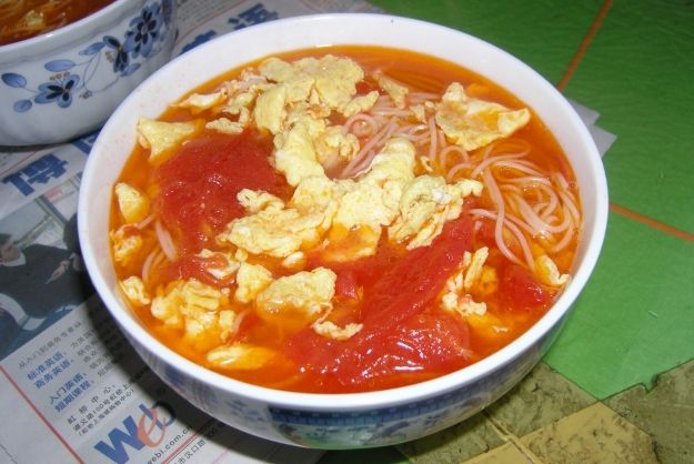 - 淋湯: 立刻將煮好、飄著完美蛋花的滾燙 番茄蛋湯 連湯帶料澆在麵條上!聽到那「滋啦」的聲音,超療癒!湯量要足夠,要能蓋過麵條。