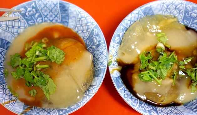 - 先到廟口肉圓來一顆古早味肉圓當點心。