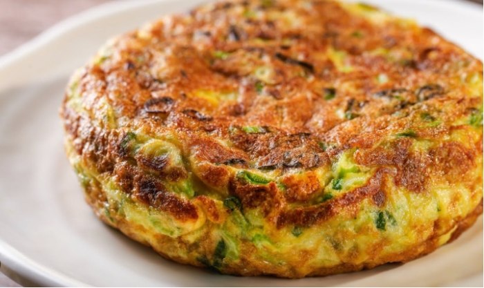 - 中火煎至邊緣凝固、粉漿變透明,底部微焦。小心翻面(或用鍋鏟協助折半),煎另一面至熟。