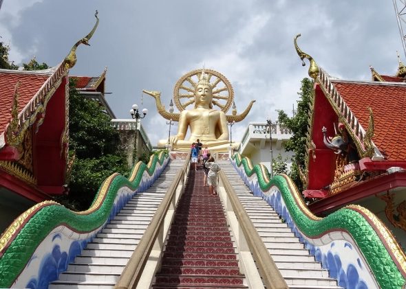 - 介紹: 蘇美島地標!12公尺高的金黃色大佛坐落在小島上,由一座橋連接。莊嚴肅穆,視野很好,可俯瞰周邊海域和機場跑道(看飛機起降)。寺廟本身不大,但氛圍寧靜。注意穿著需端莊(不可無袖、短褲短裙過膝,現場可租紗籠)。旁邊有些賣紀念品的小販。